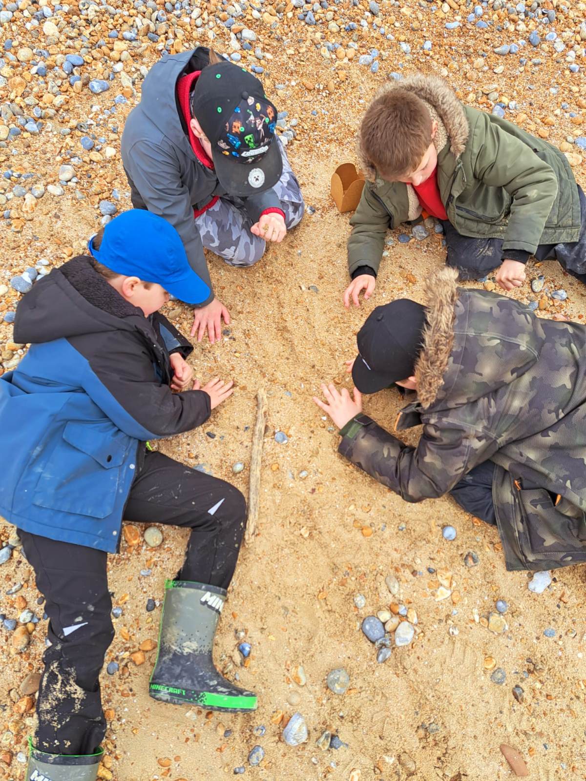 Children in Castle Class (Years 4 & 5) attend Beach School in Term 5, having one day a week for 6 weeks at Rye Harbour Nature Reserve.