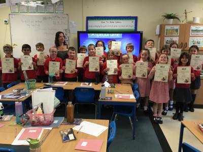 The children are introduced to sounds (phonics) which are the building blocks for reading and spelling. There will be phonics work each day in Infant classes. We follow the Twinkl validated synthetic phonics program.