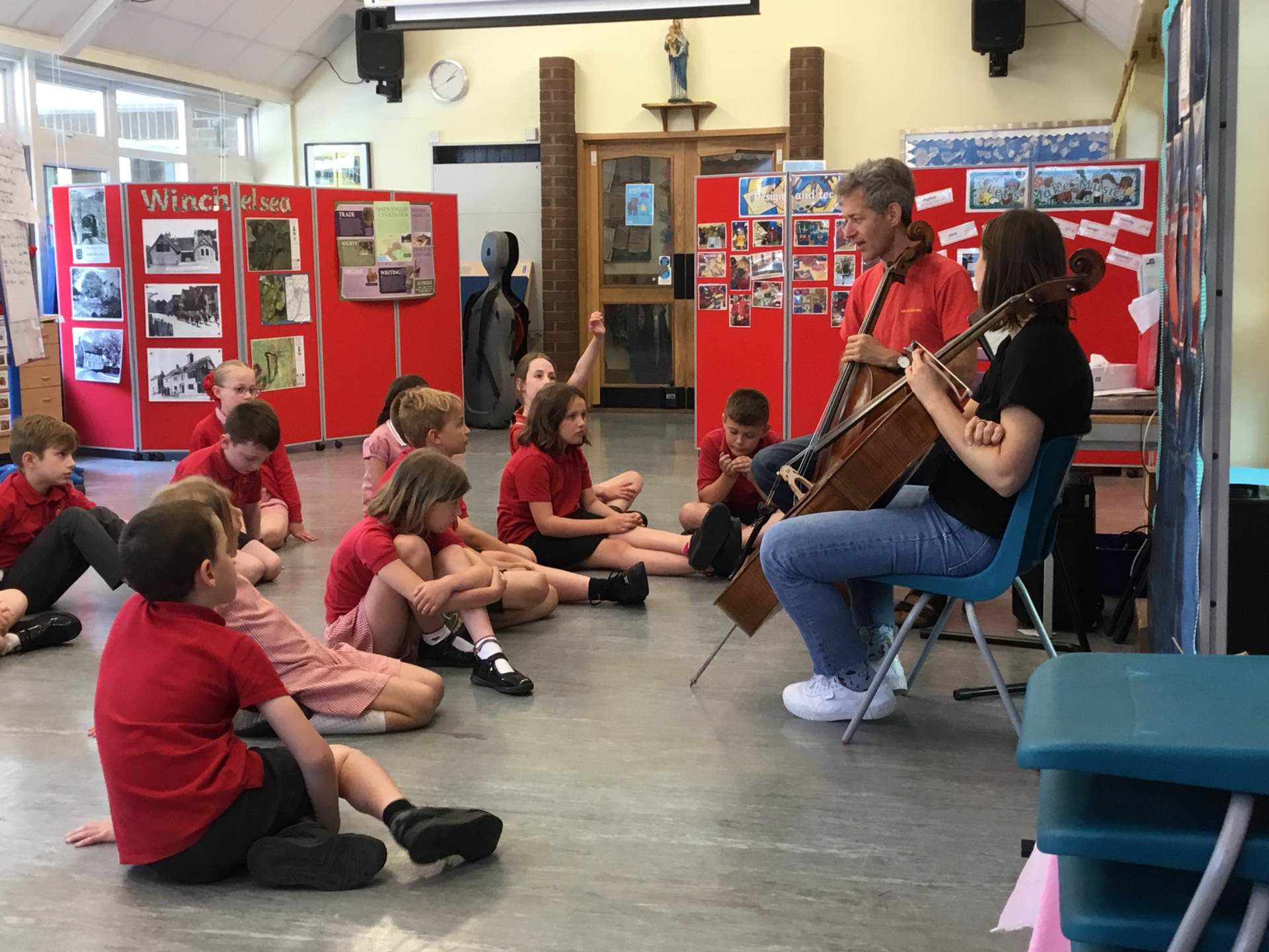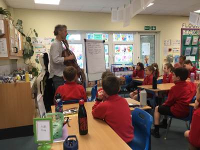 Castle class has weekly ukulele lessons with Adam, from the East Sussex music service, Create Music, and we have peripatetic music teachers in school, who teach violin and guitar lessons to small groups and individuals.