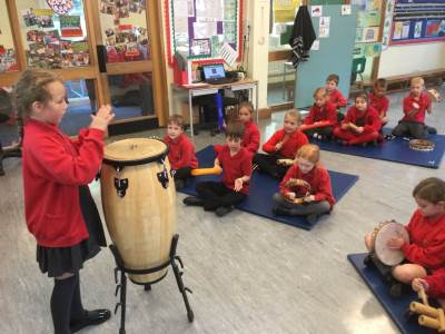 The Charanga music scheme allows children to experience a new topic and style of music every half-term. The lessons provide children with the opportunity to listen and respond to different styles of music, use their voices and instruments to listen and sing back and have a go at composing their own piece of music. The lessons are planned so that each year children follow on from the learning they completed the previous year and clear progression is evident across the school.